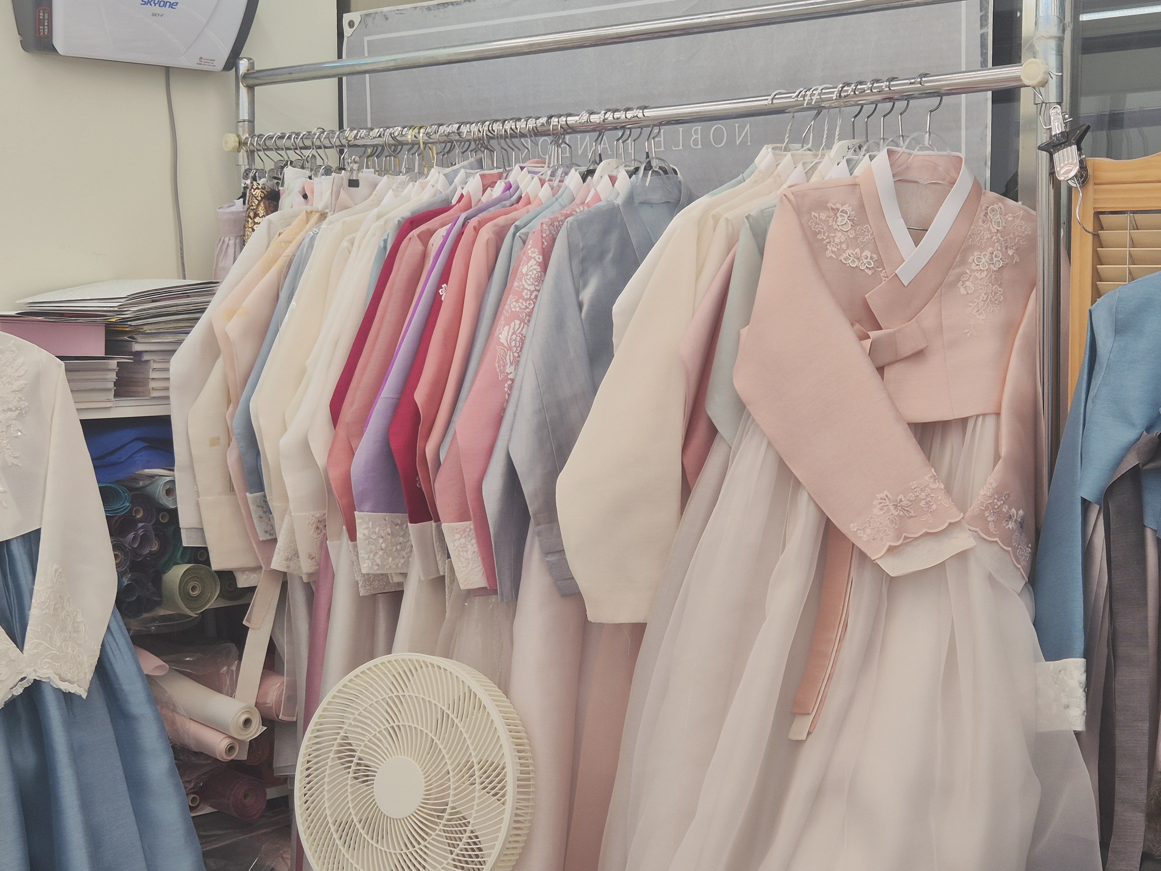 매장 안으로 들어가니 진열된 한복들 하나하나가 정말 다 예쁘고, 색감도 고급스러웠어요. 깔끔하게 정돈된 옷 상태에 한 번 더 감탄했죠.