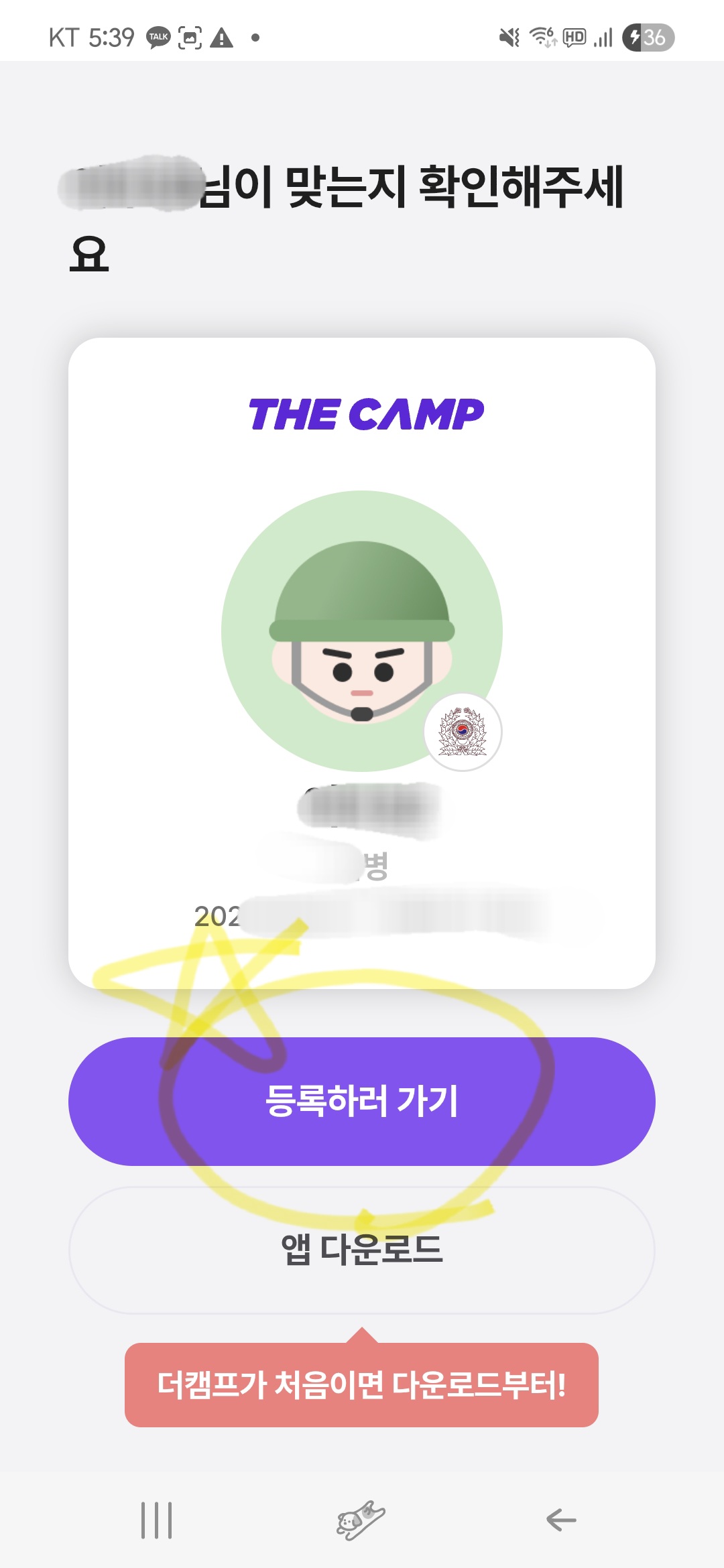 더캠프는 다운로드 뿐 아니라 로그인이 필요한 앱입니다. 로그인은 본인 인증이 필요합니다.
