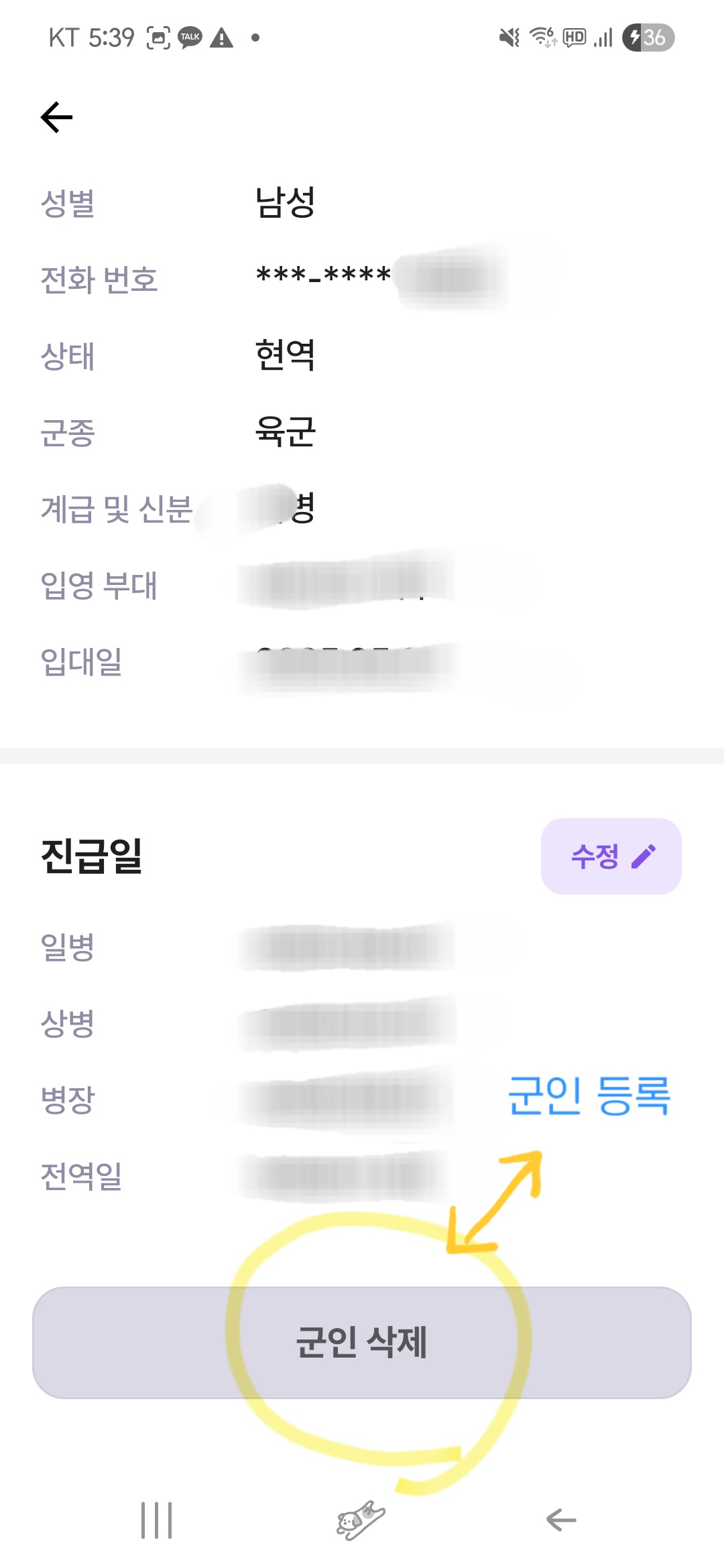 2. 입대한 사람의 이름, 생년월일을 입력합니다.