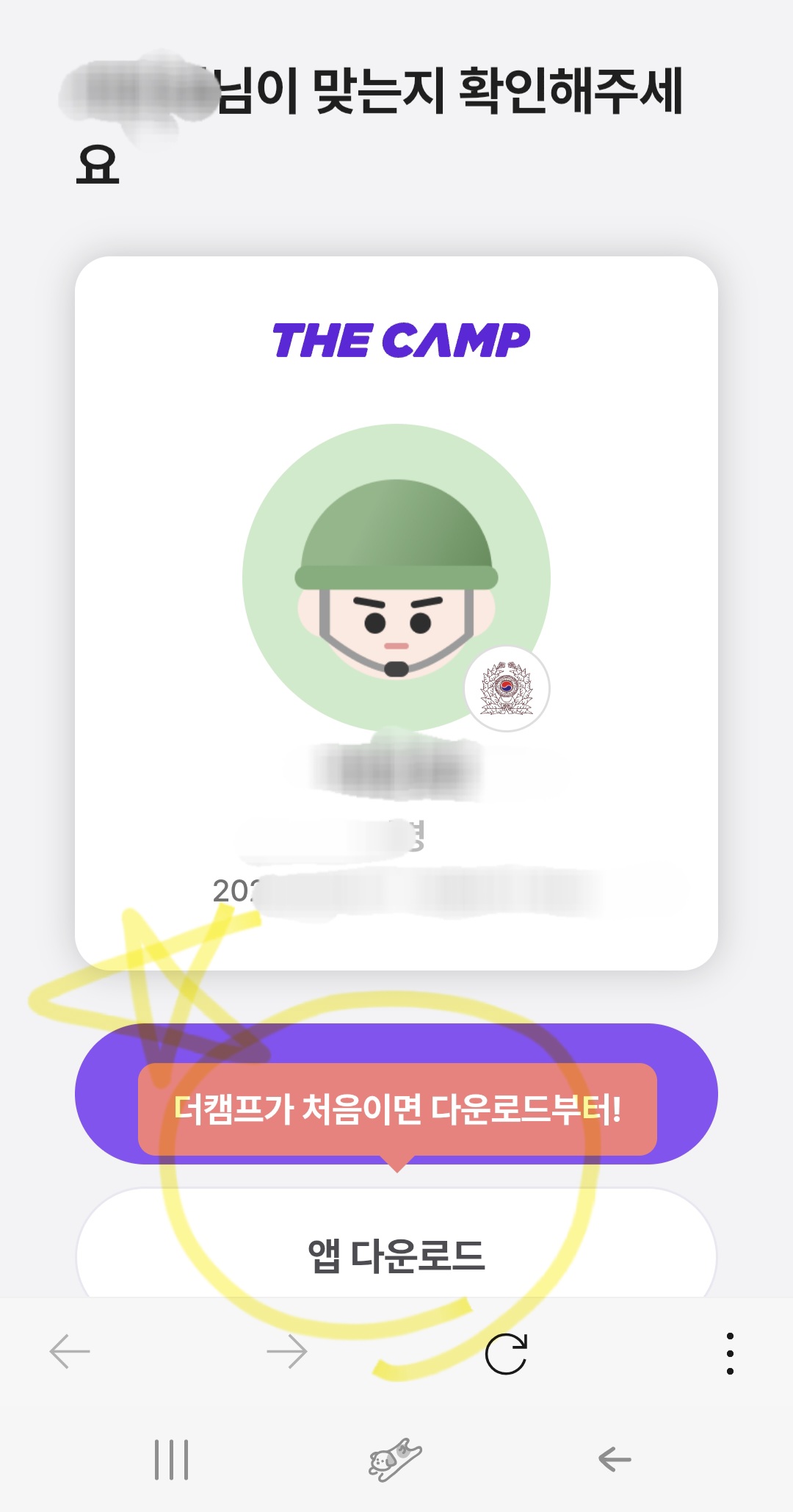 * 또는 군인 친구가 본인 링크를 보내면 그걸 누르기만 해도 등록이 가능합니다. 다운로드 전이라면 다운로드 화면으로 이동하구요. 다운로드 후에는 등록으로 연동됩니다.