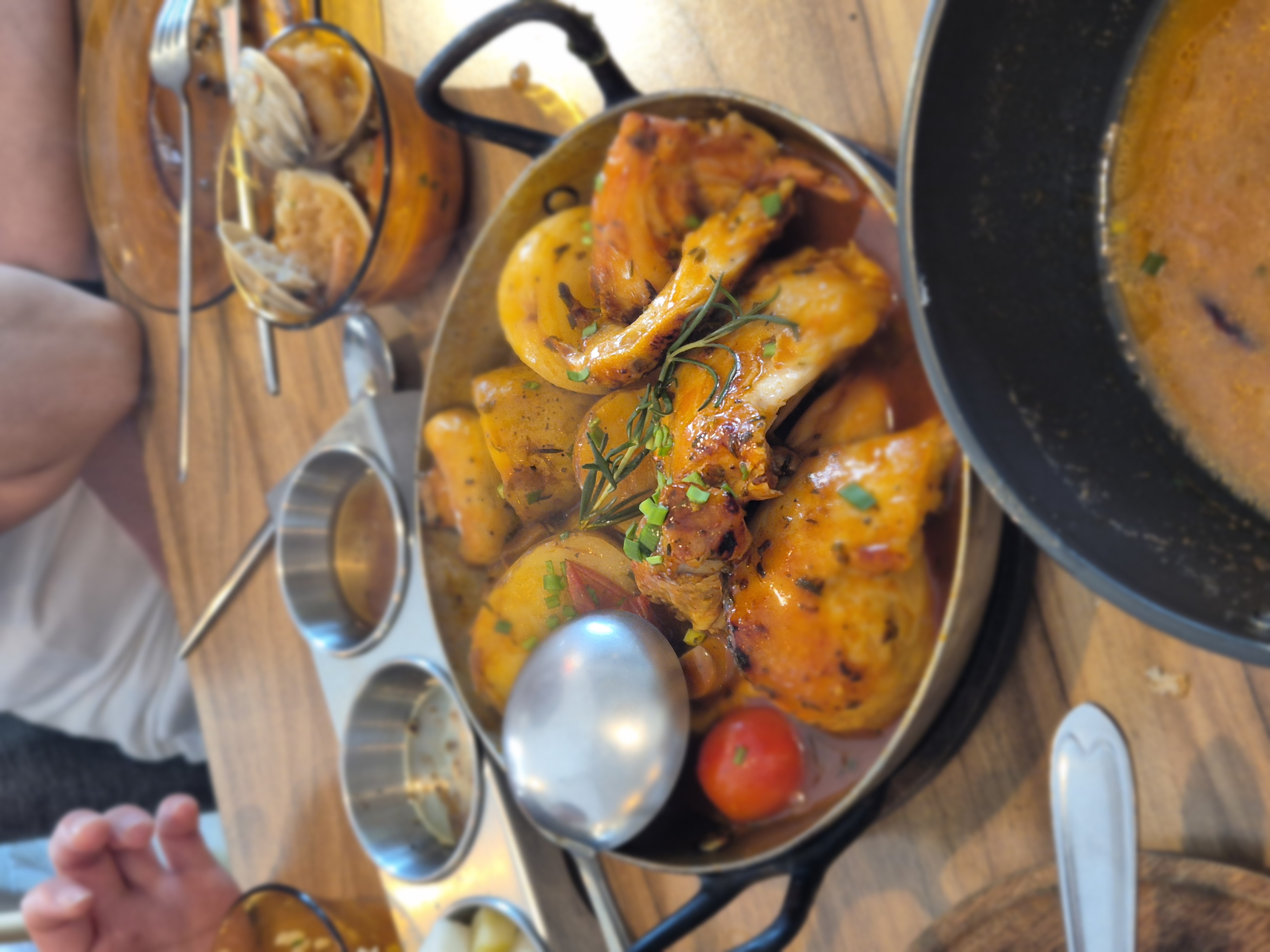 아. 해물밥 이름 해물 깔도소예요! 여기에 그릴 문어랑 먹물 빠에야도 시켰어요. 그리고 마리네이드 닭요리도 시켰습니다. 🐔