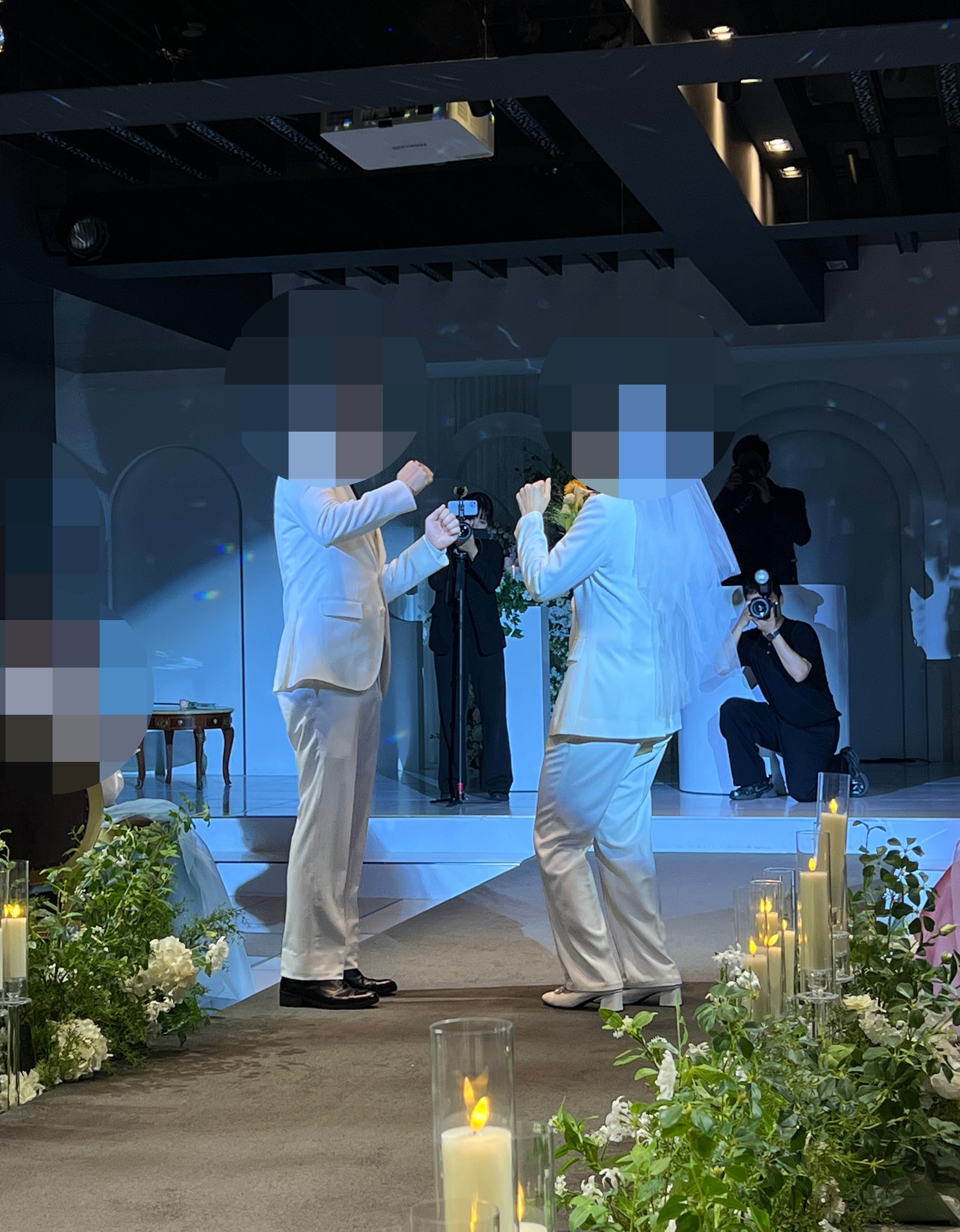 그래서 그냥 밝은 상태에서 부케를 위로 던져 모두가 바라보는 샷을 말씀 드렸는데 층고가 낮아 어렵다고 하시더라구요. (부케 던지는 사진 원하시는 분들은 층고가 높은 예식장 고르시는 게 좋아요!)