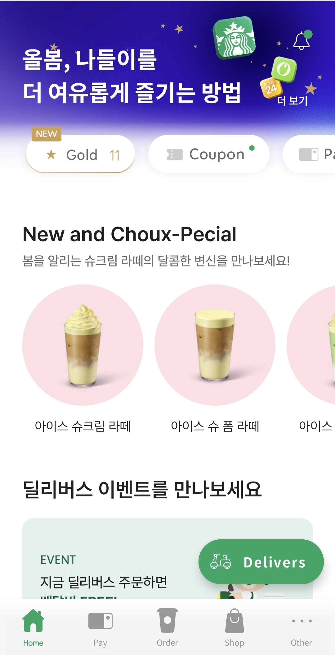 먼저 스타벅스 앱을 실행합니다.